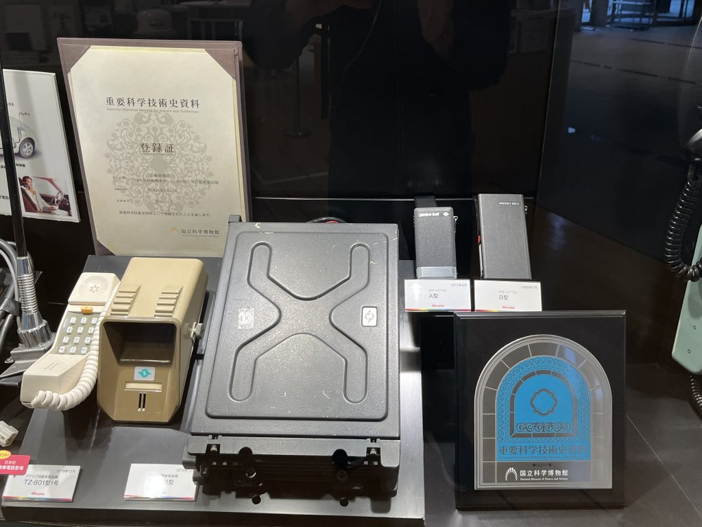 電電公社時代の自動車電話も展示されていました。国立科学博物館の重要科学技術資料の登録証も展示されていました。