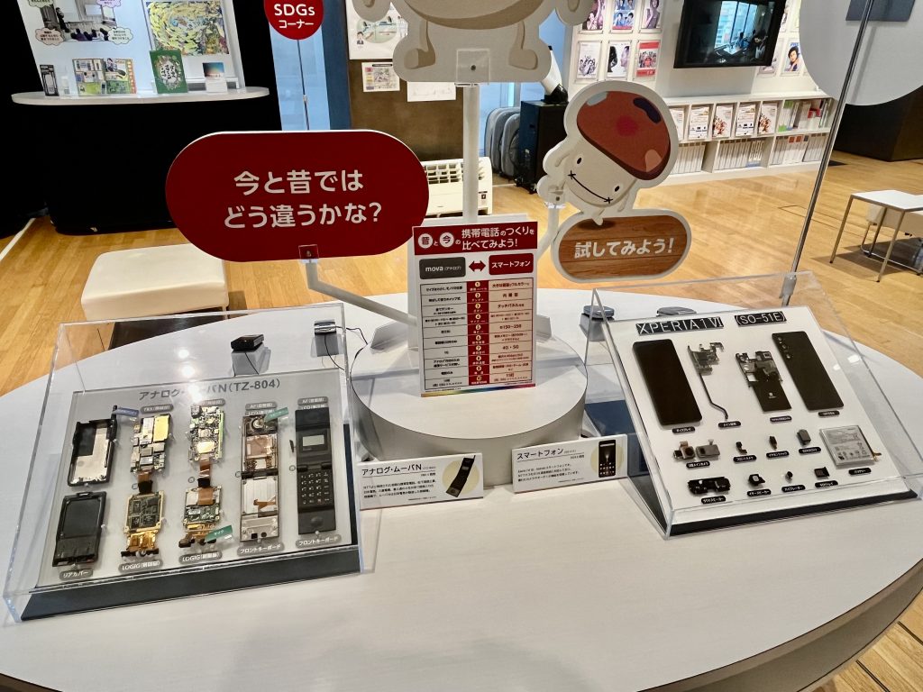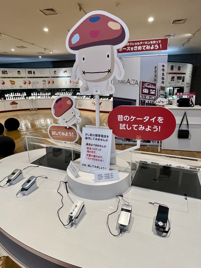 歴代の携帯電話機やスマートフォンがずらりと展示されていました。
