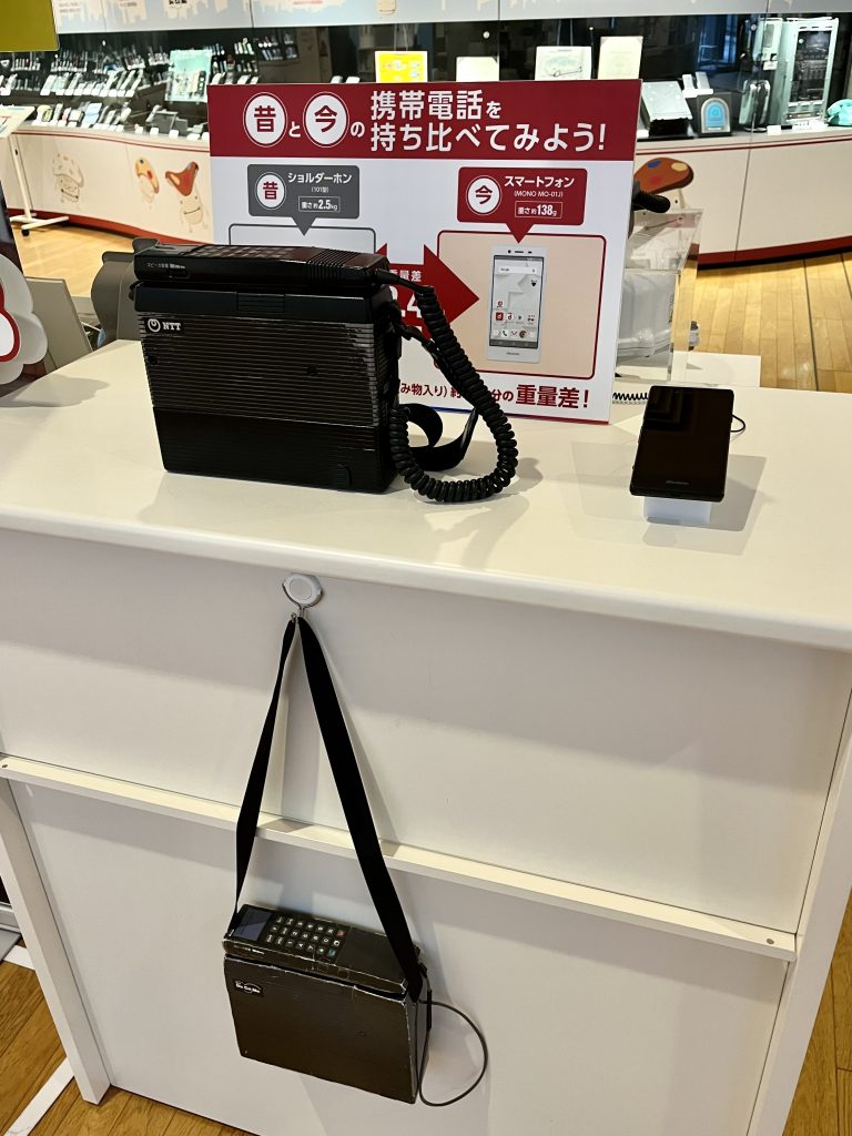 バブル時代の象徴、ショルダーホンの本物もありました。重さが2.5kgもあってずっしり肩にきました。